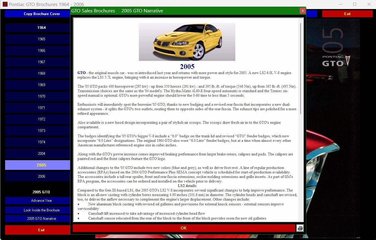 Pontiac GTO Sales Brochures 1964-2006